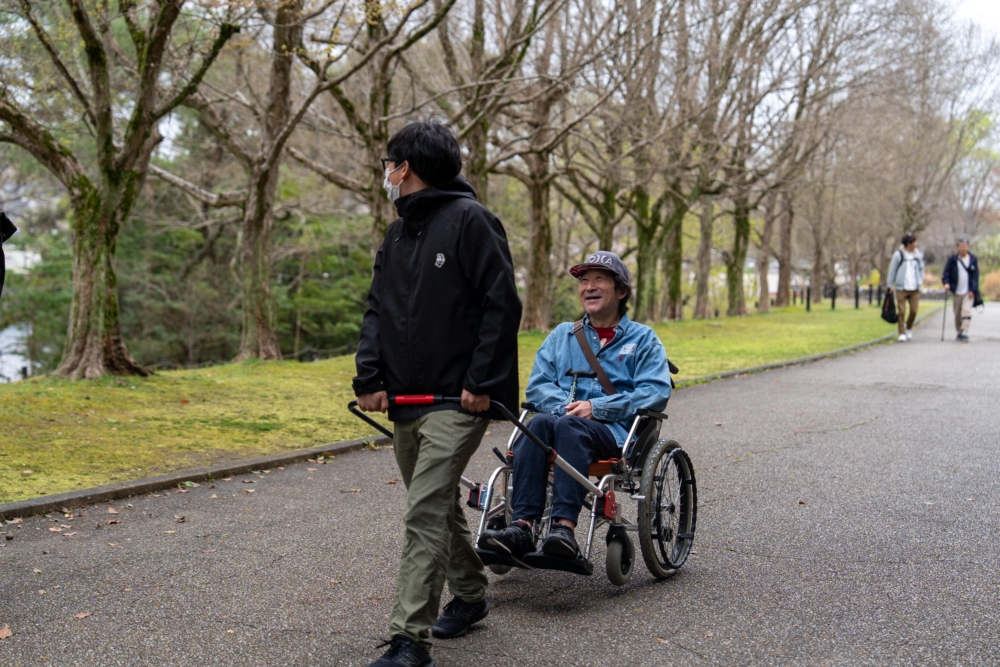 イベントでは、公園内の階段や急な坂道にも挑戦。 「ここを行けるの?」と驚かれるような場所でも、バギーなら安定して進むことができます。雨に濡れた路面でも力強く進む様子に、同行したスタッフも改めてその可能性を実感しました。